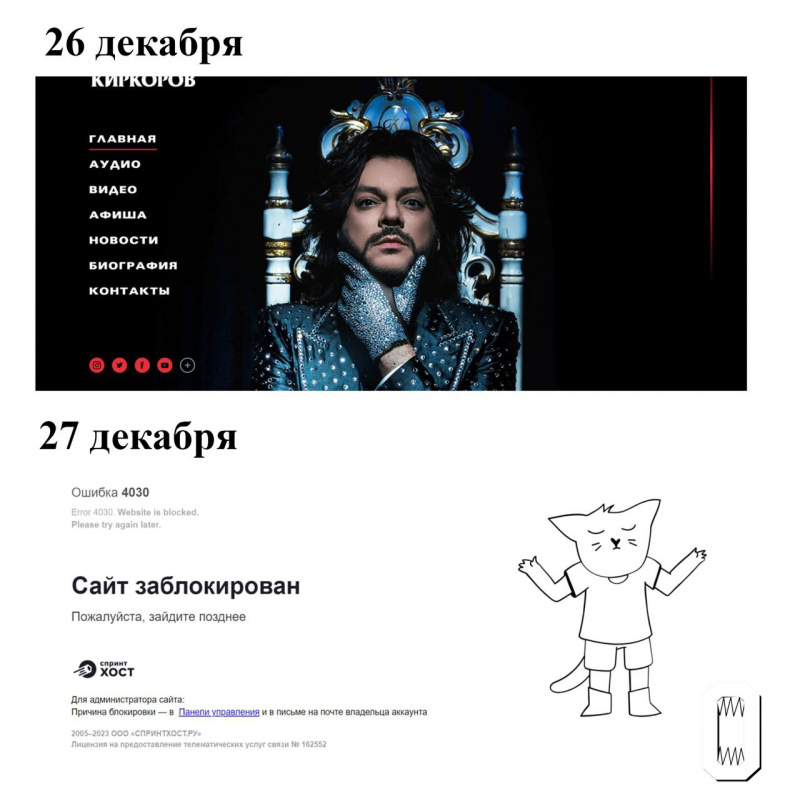 Ну и до кучи Киркорову еще и его личную страничку грохнул сам хостер.