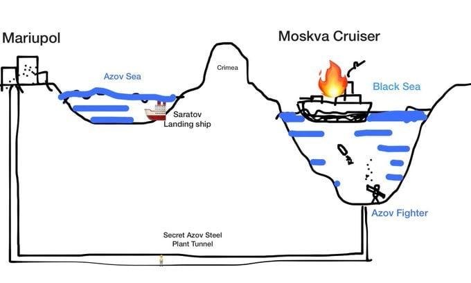 *Схема достаточно правдоподобная для российской пропаганды. Главное - на схеме есть подземный тоннель из Мариуполя... и это много объясняет.