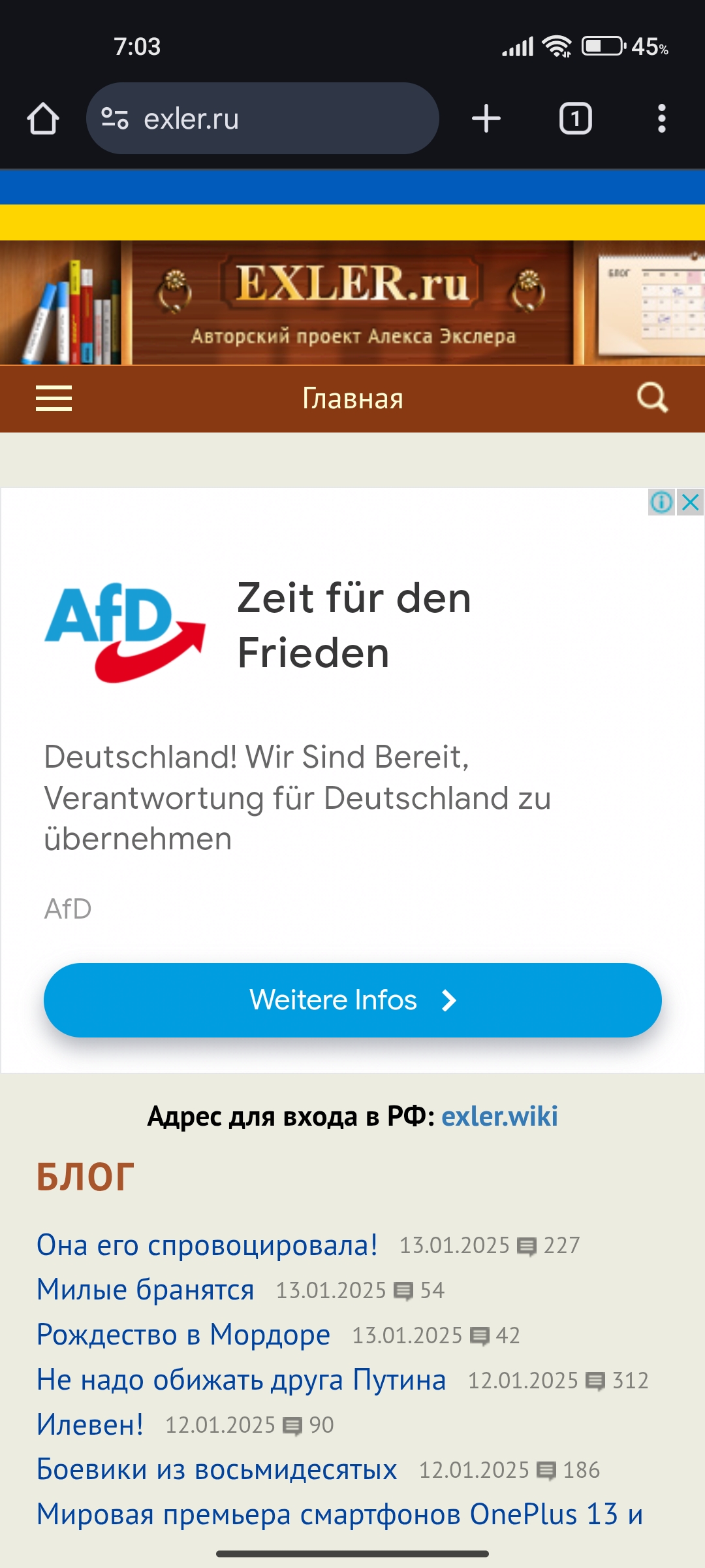 А вот так выглядит у меня страница www exler.ru