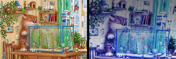 Первый раз в жизни сходил на 3D ("Аватар") - картинка как раз такого качества, как справа. Только объемная... Я как-то не ожидал, что при объёме придется цветом пожертвовать...