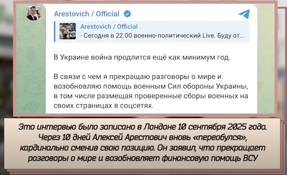 Эту передачу посмотрел. Было любопытно. Теперь, почитав комментарии тут, стало вообще забавно. Потому что все их "Алёша" предвидел и прямо там и отбил. Авансом. И про операции прикрытия, и про пары обуви, и про накрутки. Он давно уже ехидно сказал, что "Арестович" в заголовке повышает кликабельность на десять процентов. И был прав.