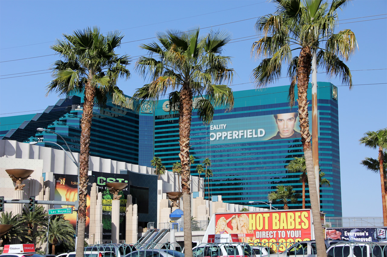 Хитрая физиономия Копперфилда на MGM Grand - это самый большой отель Вегаса.