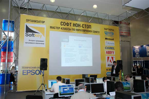 Родной Softkey на своем стенде проводил мастер-классы по популярному софту. Софт был всякий разный - и попопулярный, и просто популярный - в общем, так хорошо проводили, что я чуть было не купил Nod32. Но потом вспомнил, что у меня KIS 2009 - и успокоился.