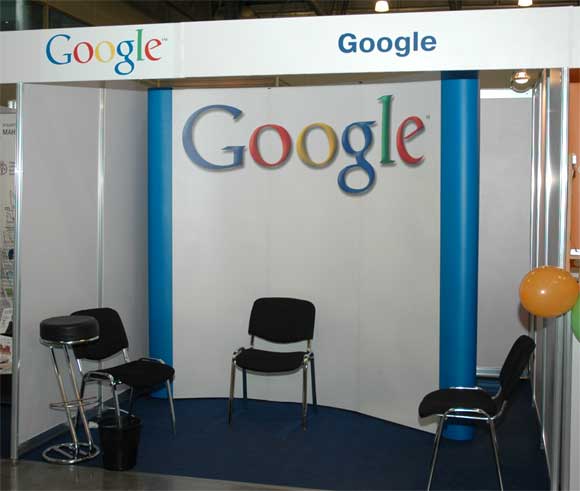 Компания Google, как и полагается такому монстру, выставила прямо-таки неприлично пышную экспозицию. Посетители аж отворачивались - до того это все сверкало и мелькало.