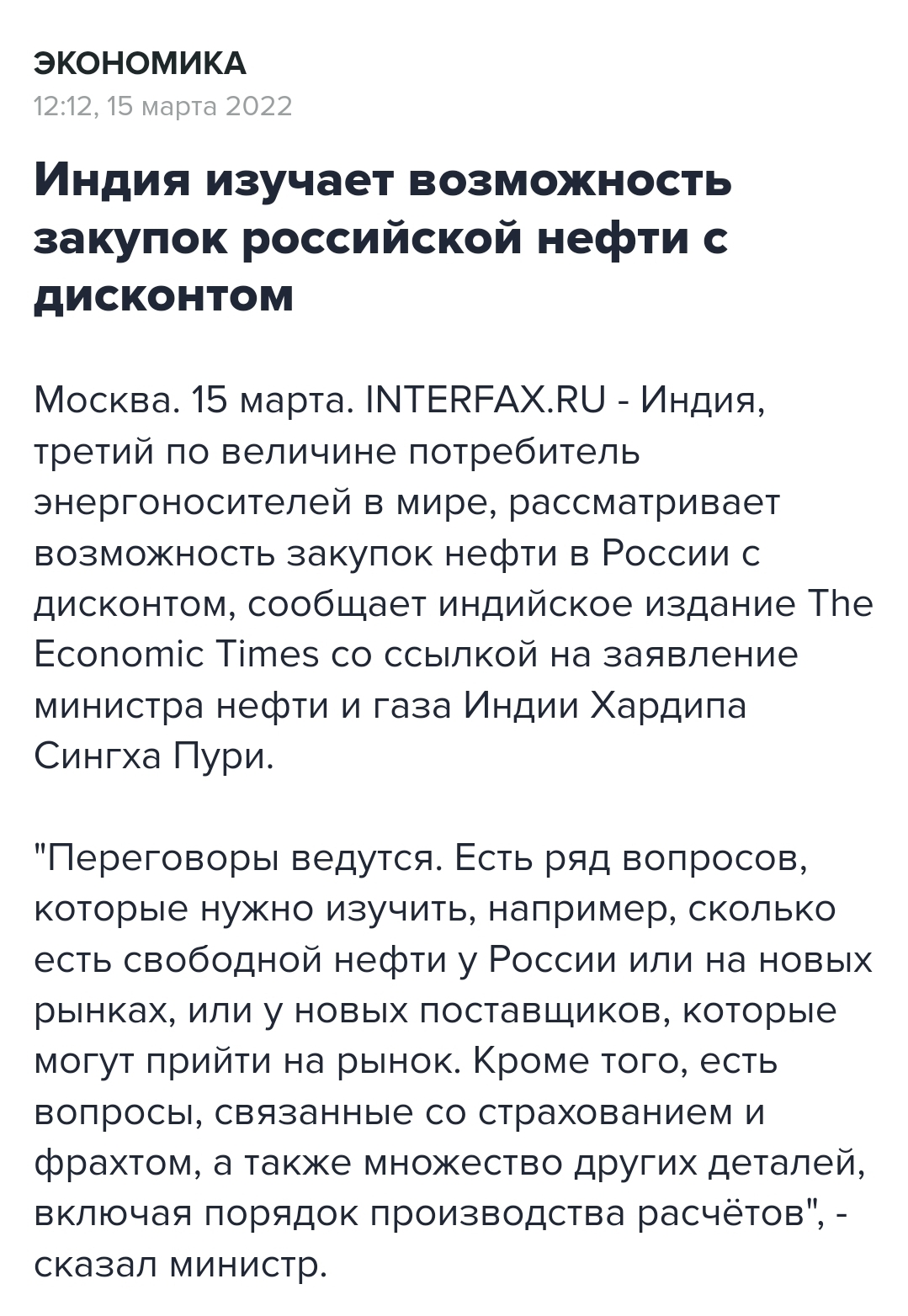 Индия заинтересовалась, пока нефть под санкции не поставили. Сразу после интерес резко пропадет. Не говоря уже о том, что нефть надо чем-то возить. А это «чем-то» тоже можно засанкционировать