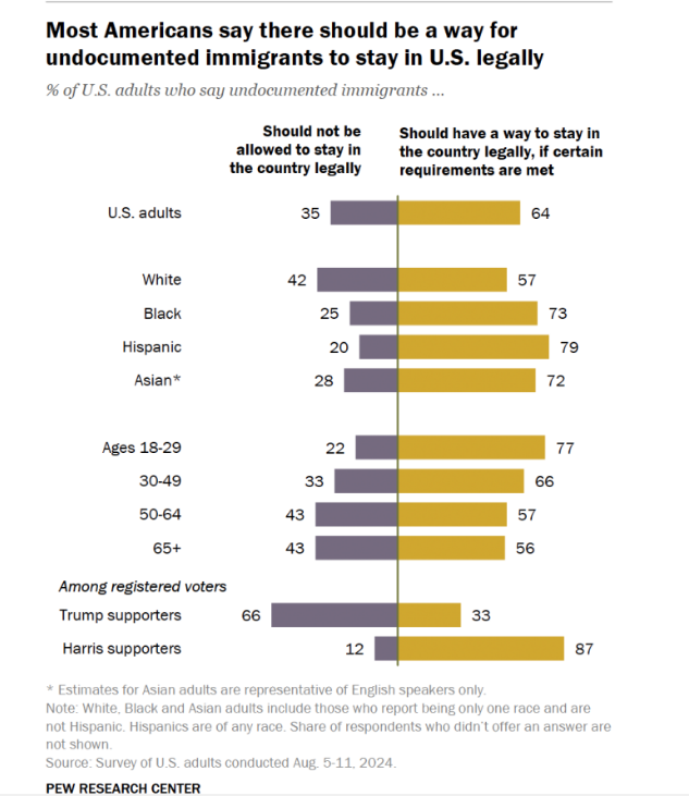 Я не против частичной амнистии для давно тут живущих работяг. Я думаю, большинство будет не против, но ПОСЛЕ того, как будут выполнены первые пункты и при условии, что граница останется на замке. А сейчас большинство даже этого не хочет, потому что их ДОСТАЛИ.