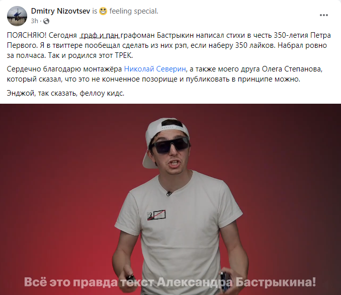 Бастрыкин разродился одой Петру Первому. На юбилей. Да так разродился, что этот дурдом даже опубликовали в телеграм-канале Информационного центра СК России. Причем в Информационном тексте никто не рискнул намекнуть Бастрыкину, что в этих виршах хорошо бы поправить грамматические ошибки на уровне третьего класса церковно-приходской школы, поэтому опубликовали как есть.