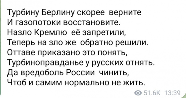Проблема, что стих то по сути верный, теперь Берлин просит у Оттавы вернуть турбину