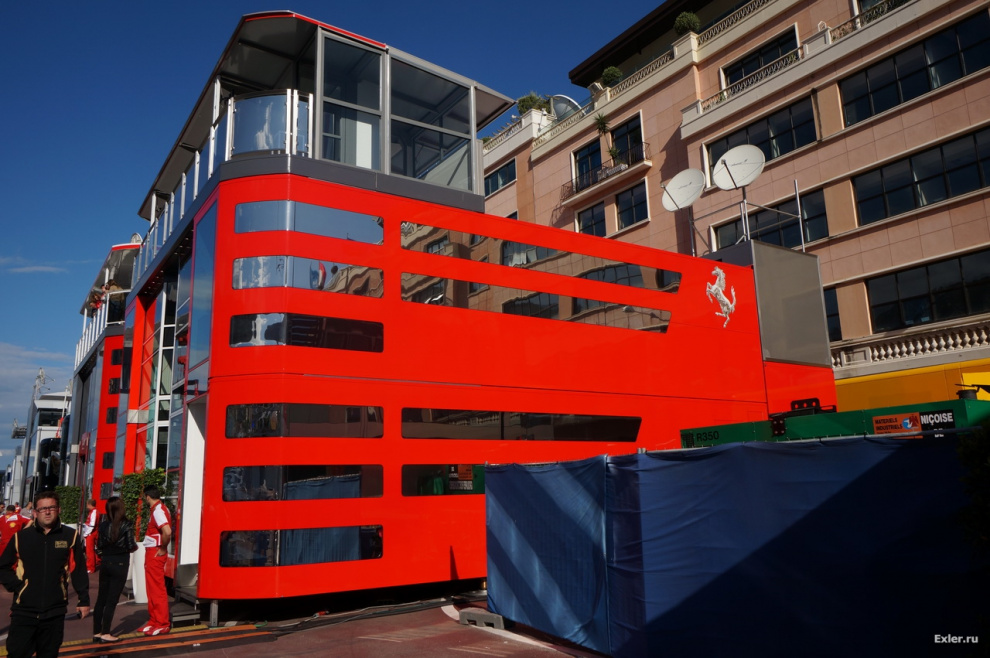 Заходим на территорию паддока. (Насколько я помню, паддок - это открытая площадка с навесом рядом с обычной конюшней, а в "Формуле" паддоком называют всю закрытую территорию, на которой находятся рабочие зоны команд, участвующих в "Формуле".)