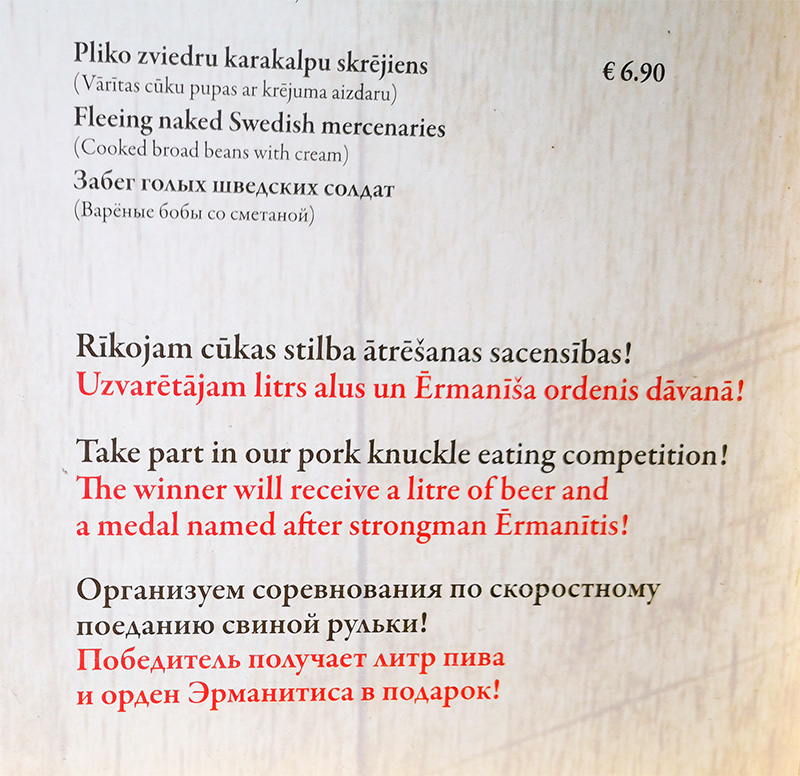 Меню у них весьма забавное."Забег голых шведских солдат" - это вообще шедевр!