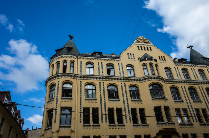 Рижские коты на крыше. Сначала они были повернуты задом к зданию Большой Гильдии, но потом котов заставили развернуть. И теперь они повернуты задом друг к другу.
