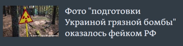 "Доказательство" подготовки Украиной "грязной бомбы", опубликованное МИД РФ, оказалось фотографией, сделанной в Словении в 2010 году. Словенское правительство пояснило, что на этом снимке, сделанном в 2010 году словенским Агентством по ядерным отходам (ARAO) для профессиональных целей, показаны детекторы дыма, которые "содержат источники радиации, но ни одного из радиоактивных материалов, перечисленных в таблице, которая помещена под фото". Официальная Любляна добавила, что МИД России использовал фотографию без ведома ARAO.