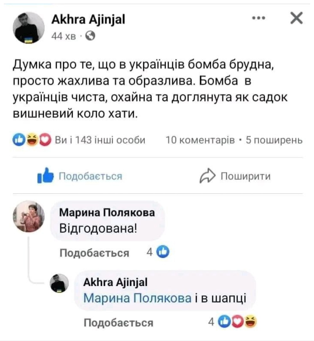 Мнение, что украинская бомба грязная, просто ужасно и оскорбительно.