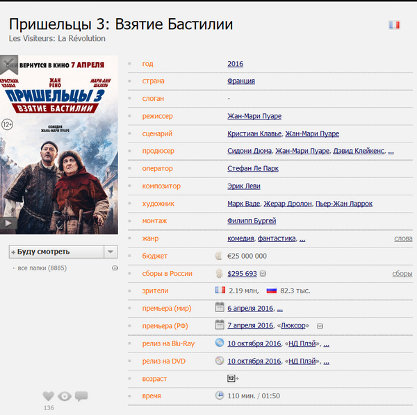 Во Франции 2.2 миллиона зрителей (если верить картинке). Это уж точно не 5 млн Евро, а немножечко больше.
