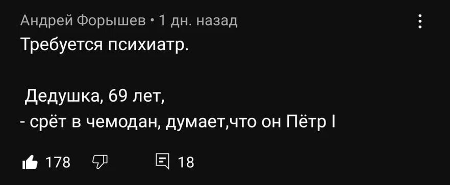 Грустно, когда вину с преступника перекладывают на свидетелей. Которые по мнению обвинителя "должны были действовать по понятиям". Уточняющий вопрос: а поделитесь своими фантазиями, какие именно "свои" и каким именно образом "убрали" бы краеугольный камень проблем в результате действий "западными лидерами" "по понятиям"? Ну там кто бы это мог быть (носитель фекального чемодана, руководитель ФСО, начальник "Газпрома")? И какая мотивация должна была быть у этого героя, если бы "западные лидеры" "отнеслись к путину по понятиям"?"Если бы обосравшиеся граждане рazzии использовали свою голову не только как склад для съестного, не было бы не только войны, но и никогда путина в кремле". Вам так не кажется?