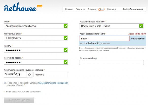 Если вам захочется дать свой адрес сайту, зарегистрировав нужный домен, то переключение на новый домен делается в настройках сайта за пару секунд.