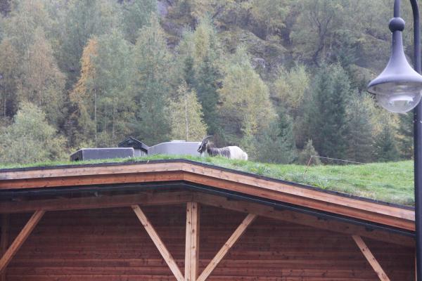 Заросшие травой и клевером крыши имеют свои преимущества - на них пасутся козы.