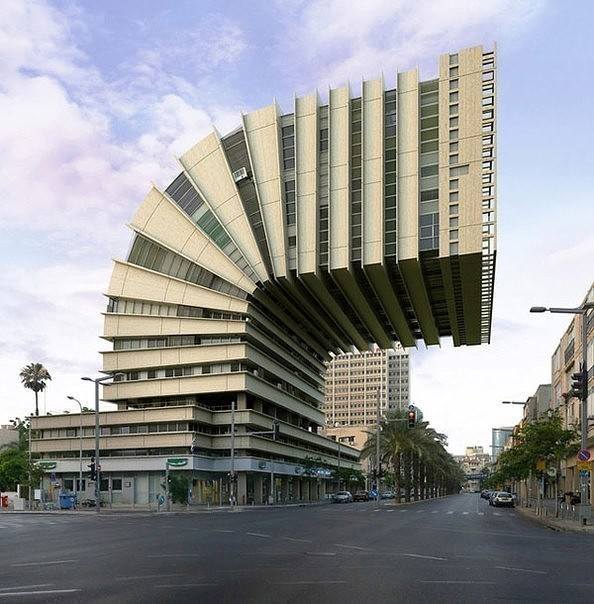 Меня в Тель Авиве реально впечатлило другое здание и без всякого фотошопа. Построили хорошие люди дом. А потом, к ним пришли пожарники и сказали: «Мы ваш дом снесем, потому что у вас аварийной лестницы нету!» «Секундочку», сказали добрые люди.