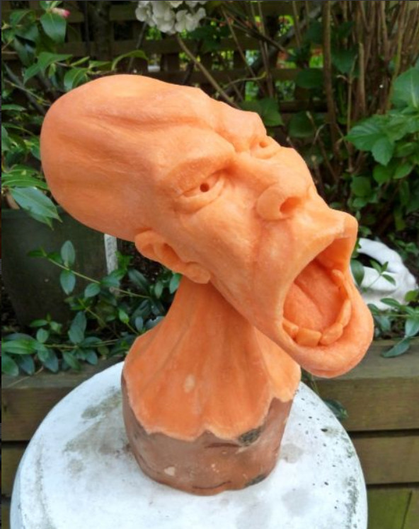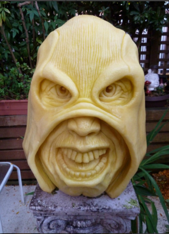 Живет в Канаде человек по имени Клайв Купер - вот сайт его студии. Клайв с помощниками делает совершенно невероятные фигурки из тыкв и арбузов. Вот галерея тыкв, вот галерея арбузов.