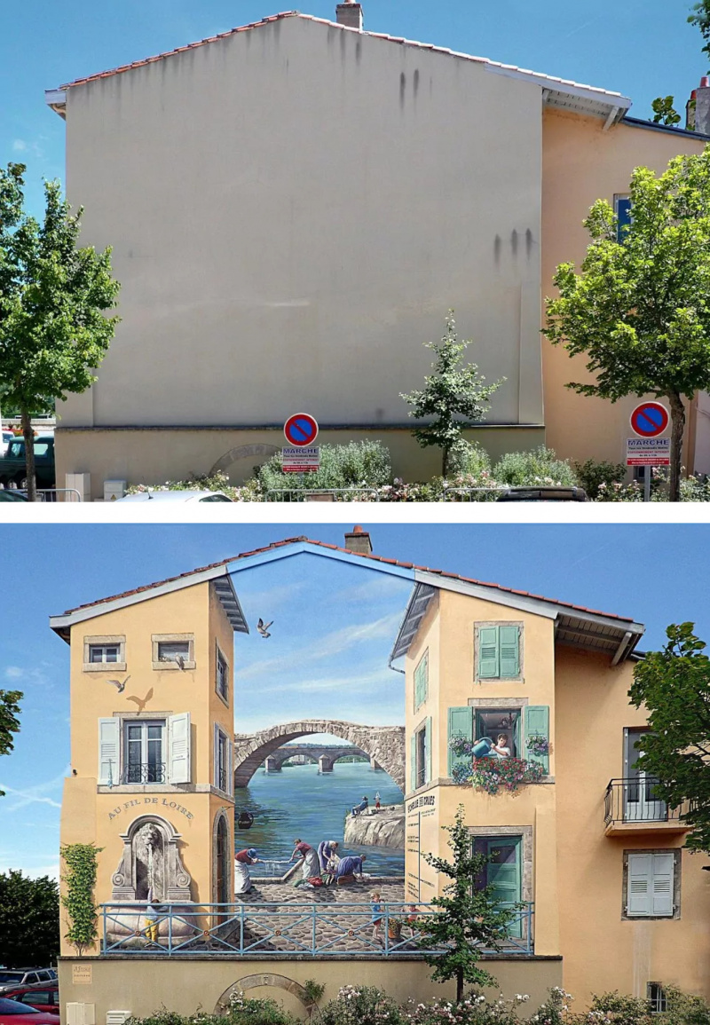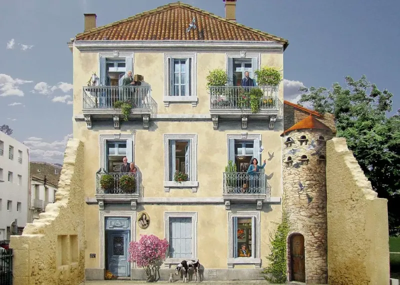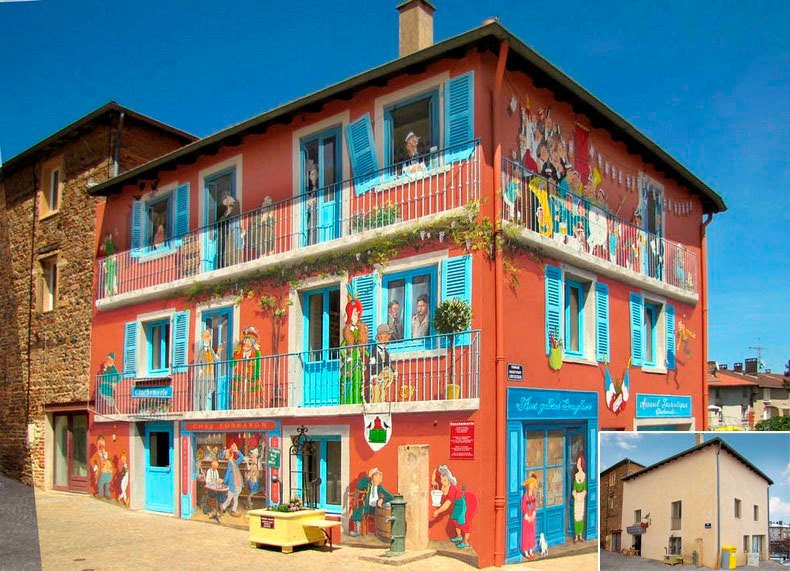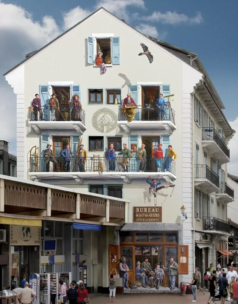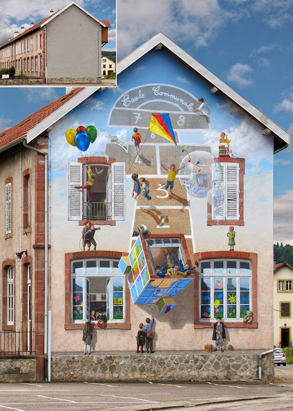Французский художник Патрик Коммеси (Patrick Commecy) преображает фасады зданий по всей Франции, создавая на безликих стенах совершенно поразительные муралы, в которых нередко присутствуют различные известные актеры, ученые, политики, спортсмены или герои литературных произведений. Патрик искусно использует различные архитектурные особенности зданий, которые он расписывает, одновременно дорисовывая какие-то новые элементы архитектуры. Также он любит создавать различные оптические иллюзии, в результате чего его муралы кажутся объемными, трехмерными.