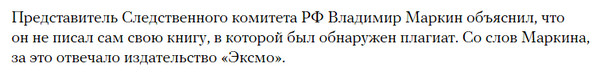 А в чем обвиняют Маркина? Думаю, что про свою предстоящую пенсию ( он же в погонах, вроде у советников юстии тоже по выслуге пенсия есть) он знал, то есть сел писать мемуары. А стиль мемуаров это почти всегда "я изложил как умел, негр написал понятно". Ну учитывая занятость до момента пенсии, вместо изложения были взяты прессрелизы и интерью. Все нормально - картина мира не рушится.