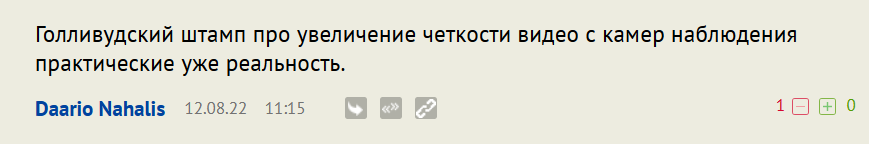 как в фильмах, когда на снимке подозреваемый в виде трех зеленых квадратиков, и следователь говорит - очисти снимок, фигак- и там каждая родинка видна и марка его авторучки из кармана