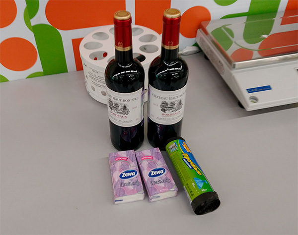 Зашел в "Перекресток", прикупил странноватый наборчик: пару бутылок вина, бумажные платочки и мусорные пакеты. А там работает одна кассирша, к которой я всегда стараюсь попасть: это дама внушительных габаритов, которая очень юморная и все время что-нибудь отмачивает.