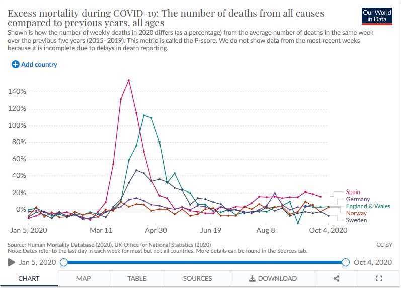 А зачем эти строгие всеобщие меры, если и так вполне все хорошо получилось (как в Швеции, так и в Эстонии)? Избыточная смертность по году будет небольшая, уже сейчас (на конец сентября) она 4300 (что меньше официального числа жертв короны), и, с каждым месяцем все уменьшается (каждый месяц с лета идет в минус от среднего). В итоге, к концу года, все сведется к паре тысяч.