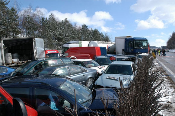 AlexV: Ездить не умеют! Вот у нас в Сибири три дня назад ночью прошел дождь, и утром все замерзло. А мне в соседний город (20 км) на работу. Вся трасса - сплошной лед, в городе тоже. Ни одной аварии на дороге, никого даже не занесло.