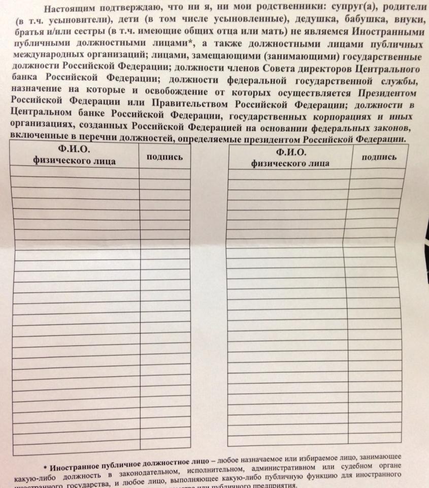 Я еще год назад подписывал подобную бумагу при открытии счета. А может и до того подписывал. Только перечень был покороче, а точнее, касался лишь меня, что я не являюсь тем-то и тем-то. То же и с брокерскими счетами. То же и зарубежом, в США особенно, кто ты и что ты.