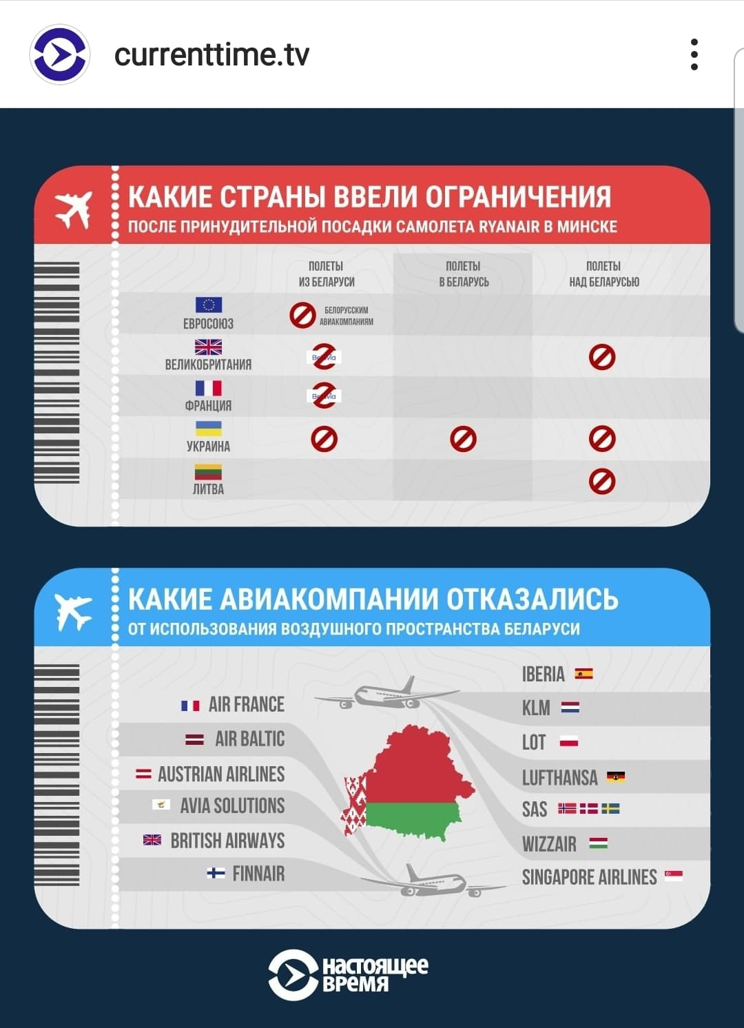 Ну, поехали 24 мая правительство Литвы решило с 25 мая запретить прибытие в страну и вылет из Литвы самолетов, маршрут которых проходит над территорией Белоруссии.