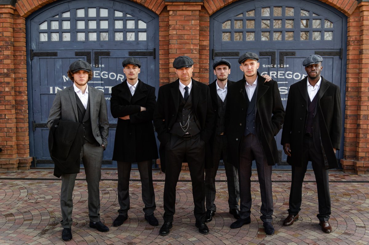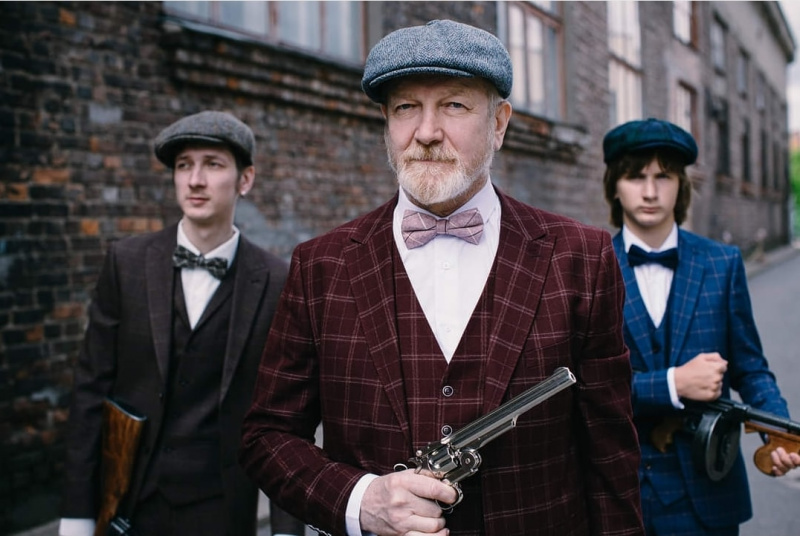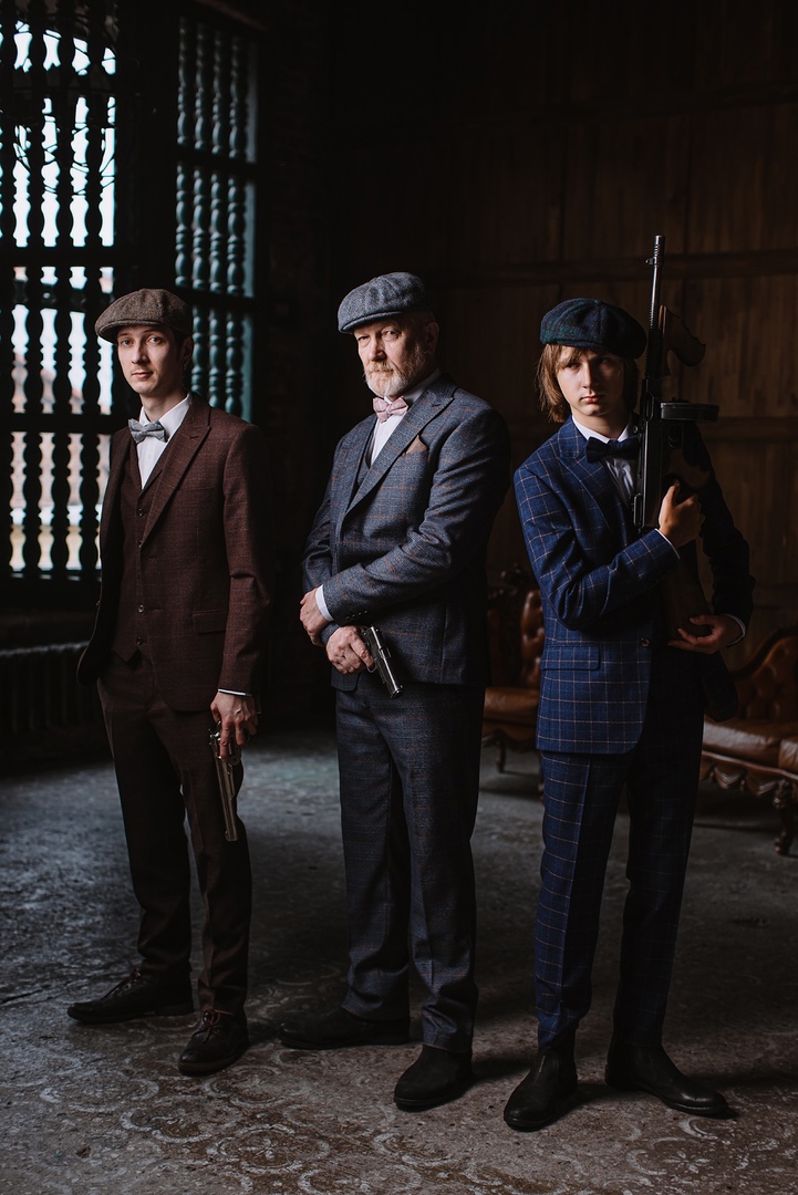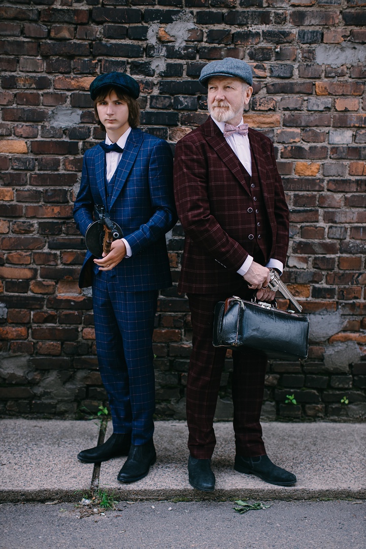 Для фото с Кузьмичем референсом послужил сериал "Острые Козырьки", а это - Великобритания, Бирмингем и 20-е годы прошлого века. Отсюда и костюм в очаровательную клетку и, собственно, кепки.