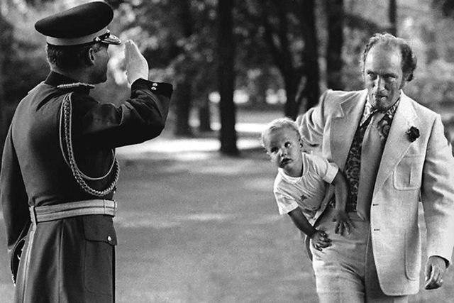 Премьер–министр Канады Пьер Эллиот Трюдо несет под мышкой будущего премьер–министра Канады Джастина Трюдо, 1973 год.