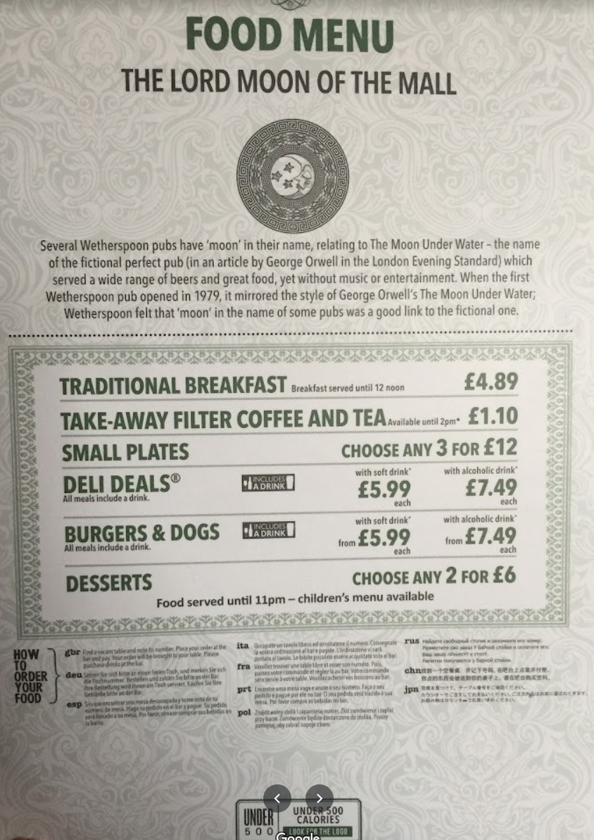 Давно там не был. Похоже, он больше не принадлежит Wetherspoon, но в любом случае фотография дает представление о ценах в пабах этой сети.