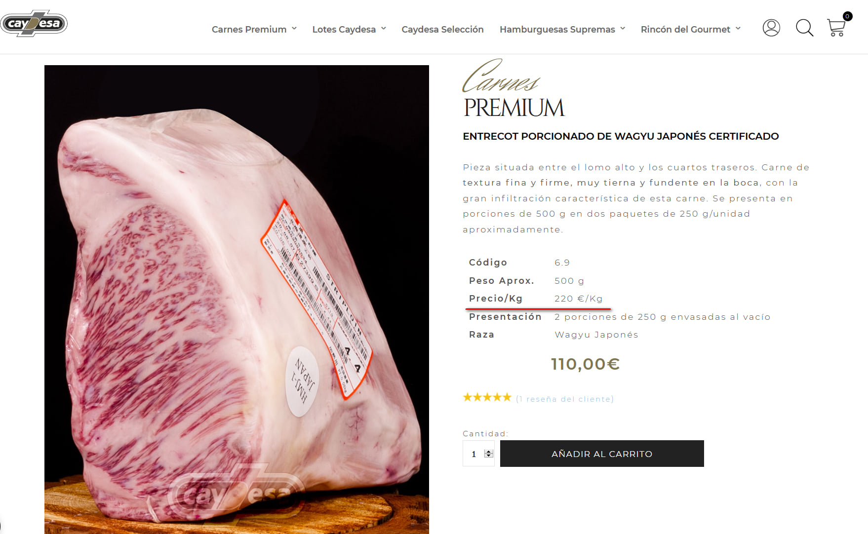 Интересно, кому вообще может прийти в голову покупать мясо за такие деньги? Ну кроме, конечно, пафосных ресторанов, где один антрекот из такого мяса будет стоить €50-60.