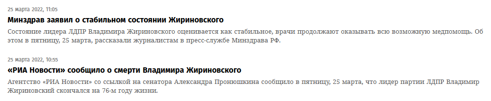 К тому же Лента хороша оперативностью (в основном) и понятной точкой зрения - умеренные прокремлёвцы. Так что можно их использовать как точку отсчета СМИ, про которое известно что оно в основном врет - но их не заносит.