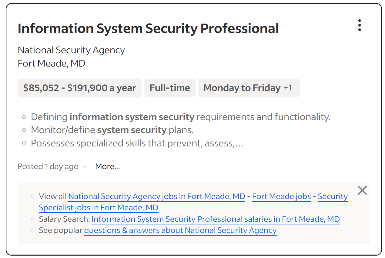 Это на обычных должностях. На секретке платят сильно лучше, и чем выше уровень секретности, тем больше доплаты. Деньги то платят не просто за работу и молчание. Работы как раз толком может и быть, большинство клерков в спецслужбах днями просто сидят и смотрят в стену напротив. Но чем выше уровень секретности, тем больше к вам требований и ограничений помимо работы, вплоть до того, что и близким вашим может потребоваться официально такие обязательства принять. За вот это все и доплачивают.