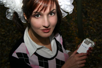 Xebec: в наряде проститутки, косящей под малолетнюю девчонку.