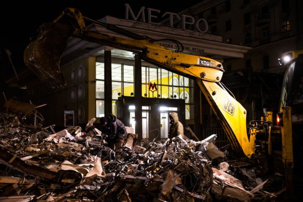 Жутковатые фотографии Евгения Фельдмана в "Новой" о том, как в Москве сносили сотню небольших магазинчиков - "Ночь длинных ковшей".