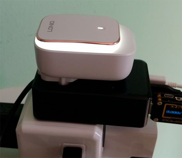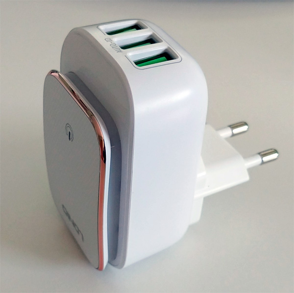 В рамках изучения всякой полезной домашней фигнюшки купил вот такую штуку за €12 - ночник-зарядка. Если рядом с кроватью в пределах досягаемости есть розетка, то у вас получается и ночничок, и в нем три адаптера зарядки на 5V и 3,4А.