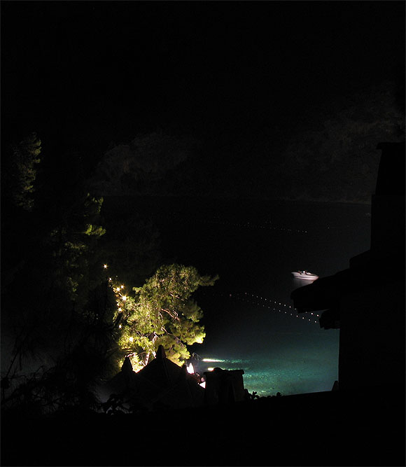 Сфотографировал залив ночью. С террасы номера. Освещение там совсем никакое, поэтому поставил фотоаппарат на перила и сделал выдержку в 15 секунд. Что-то, как ни странно, получилось. Настроение по крайней мере передалось - вот это все выглядит именно так.