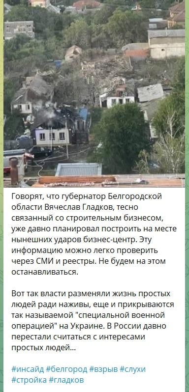 И вот фото из Белгорода, для примера. Там не монолитный железобетон разрушен, очевидно