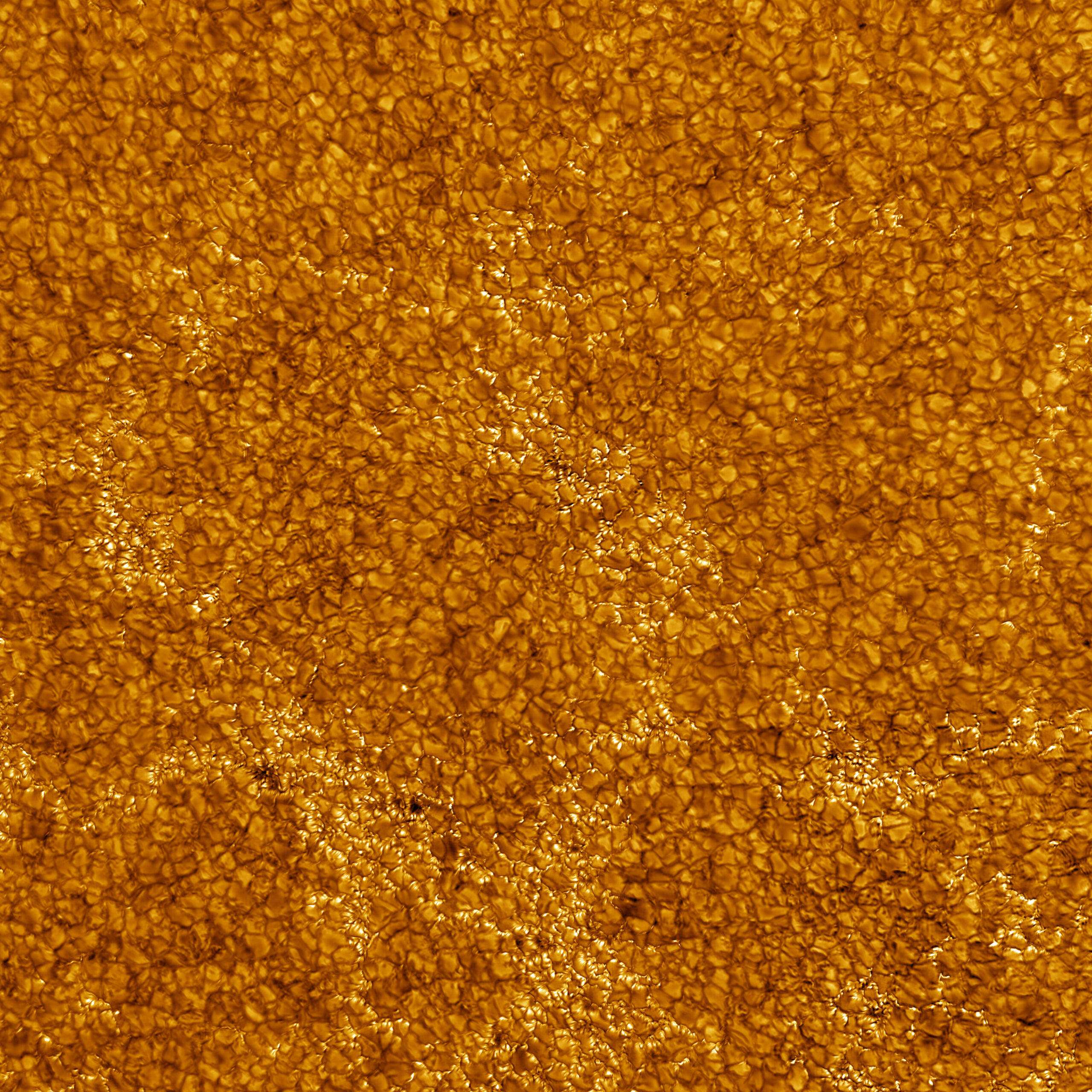 Первые изображения хромосферы — области атмосферы Солнца над поверхностью — сделаны 3 июня 2022 года солнечным телескопом Даниэля К. Иноуе. На изображении показана область диаметром 82 500 километров с разрешением 18 км. Это изображение получено на длине волны 486,13 нм с использованием линии водорода-бета из серии Бальмера. Изображение предоставлено: NSO/AURA/NSF.