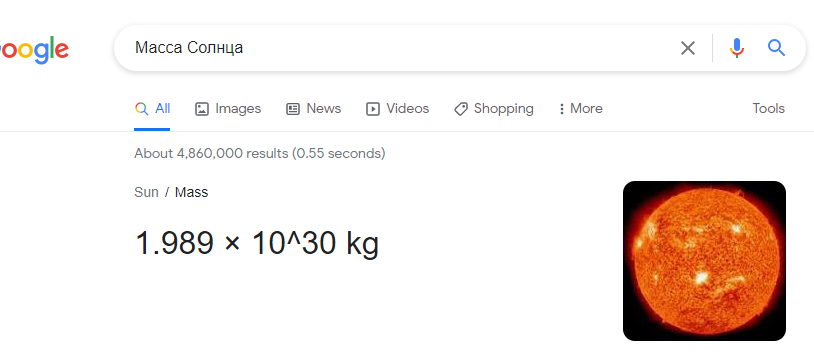 Масса Солнца составляет два октиллиона тонн, три октиллиона свечей!