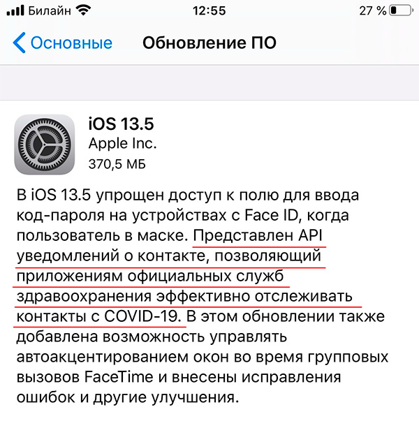 А что такого? API разработан совместно с Google, так что на Android’ах (на всех тех 2х моделях, которые получат обновление ОС 😉 ) этот API тоже появится. На iOS пользователь должен подтвердить согласие на передачу данных приложениям, которые этот API будут использовать. Это согласие в любое время можно отозвать.