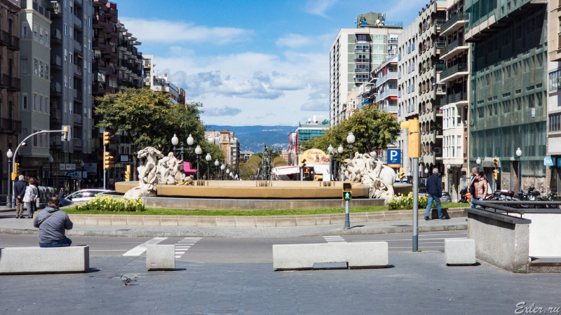 Фонтан, символизирующий четыре части света. Воды в фонтанах сейчас нет по всей Каталонии: засуха, в хранилищах воды мало, приходится экономить.