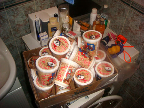 Потом на том же рынке отправились за сметаной. Домашнюю покупать не было никакого смысла, поэтому решили взять недорогую 20% в пластиковых упаковках по литру. Бабульке-продавщице сказали, что нам необходимо повысить мужскую силу, поэтому и берем сметанки - с запасом, чтобы уж точно сработало. Бабулька была слегка в шоке, потому что мы взяли 60 литров.
