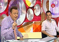 Посмотрел программку еще вчера вечером в записи. Алекс молодцом, высказался, что называется "и нашим и вашим". 😄 Зато ведущие вообще разбуянились не на шутку, особенно этот кадр, что на этом фото с Алексом, видемо возжа под хвост попала с предыдущего обсуждения тарифов на сотовые. 😄 . Вообщем устраивали там вопли и перепалки какие-то, аж бошка местами болела 😄 Ширянов рассказывает откуда пошел мат, доходит до места про языческие культы-тут бац ведущий подрывается как ужаленный, все хватит хватит и начинается бардак в студии 😄:) . Вообщем модераторов бы самих отмодерировать 😄