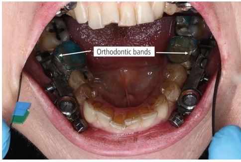 Приятель сломал челюсть, ему нацепили на зубы скобы, и зафиксировали резинками, чтобы челюсть на них висела. Примерно то же самое. Водку кашей через трубочку закусывал.