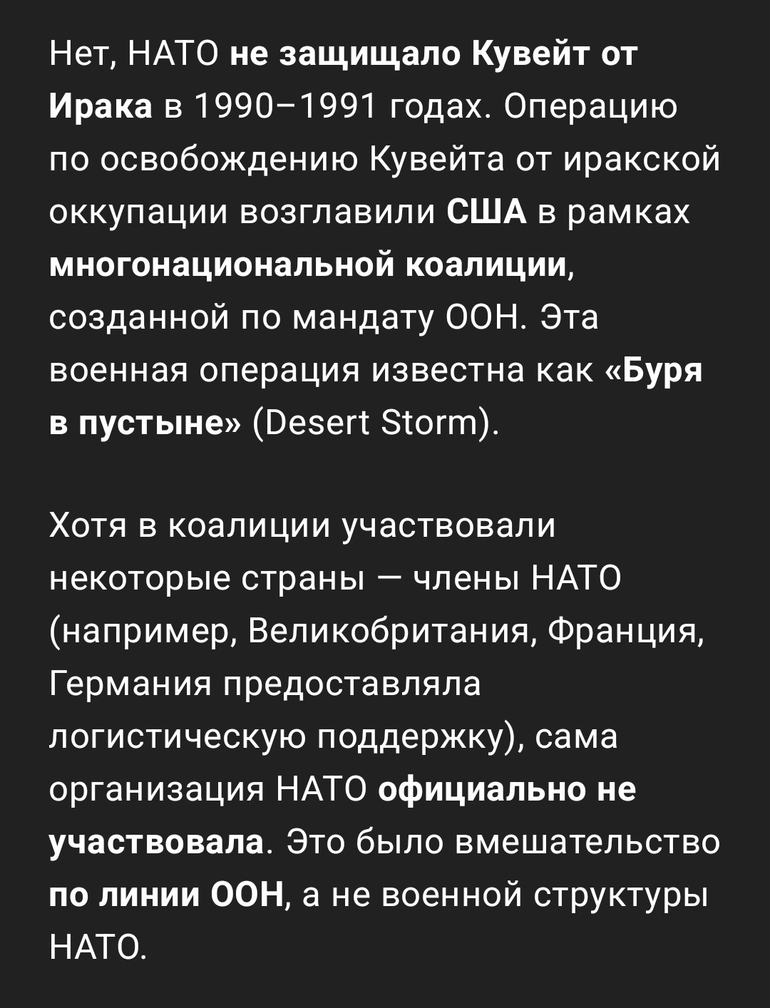 Ну а какого такого прелестного в Кувейт можно НАТО отправлять, чтобы отбивать Кувейт от Ирака?!?